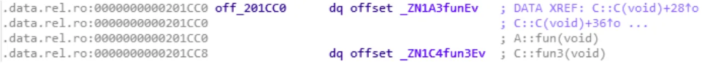 可见第一个表是继承A的,但是也有C自己的虚函数;第二个表