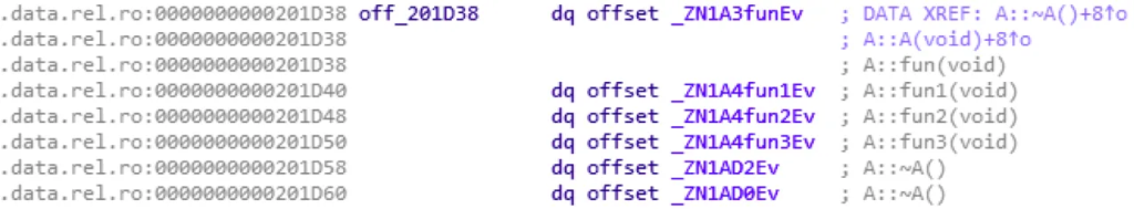 The entries for virtual destructors are actually pairs of entries. The first destructor, called the complete object destructor, performs the destruction without calling delete() on the object. The second destructor, called the deleting destructor, calls delete() after destroying the object.