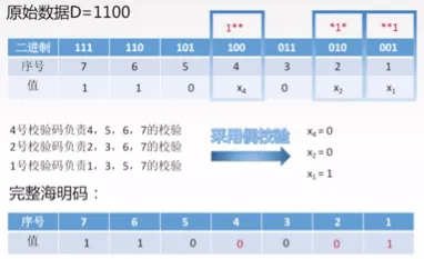 海明不等式: 2^r >= m + r + 1 ; m是raw数据的比特数,r是检验码的比特数