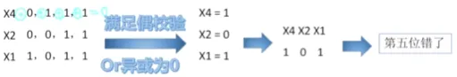 将r位检验码分别放在第2^n(n是非负整数)位中;其中,第2^n位作为检错位负责所有第n+1比特位为1的序号所对应的比特位的奇偶检验
