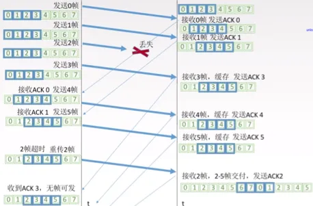 (5)当一个帧超时了,当前帧以及后面的所有帧都需要重传(后退N帧)