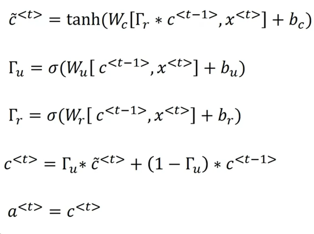 $$ \begin{equation}c^t = \Gamma_u * \tilde{c}^t + (1 – \Gamma_u) * c^{t-1}\end{equation} $$