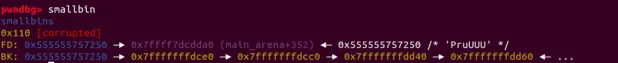 這時smallbin中唯一的chunk的fd和bk指針還是正常的
