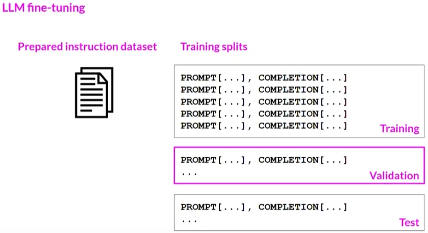 训练数据集包含多个针对感兴趣任务的提示和完成示例,每个示例都包含一个指令。