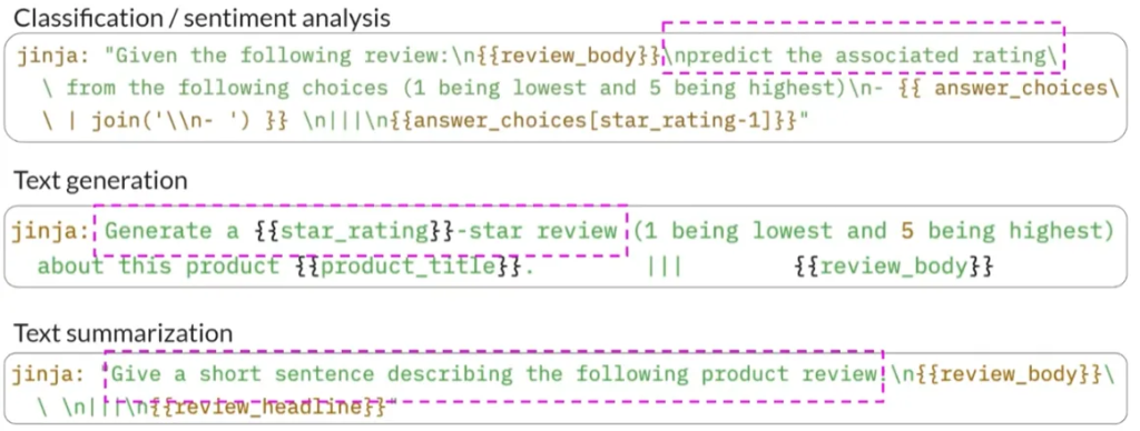 - 例如,如果你希望提高模型的总结能力,你会构建一个数据集,其中的示例以“总结以下文本”等指令开始。