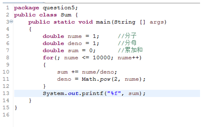 5. 编写程序:有一序列(分子为1、2、3递增,分母为1、2、4倍增):1/1,2/2,3/4,4/8,5/16,6/32,…求出这个数列的前10000项之和。在报告中附上程序截图、运行结果截图和详细的文字说明。(15分)