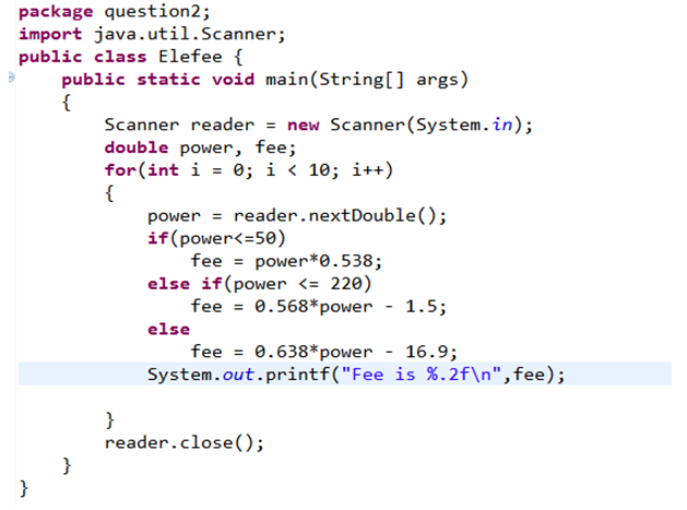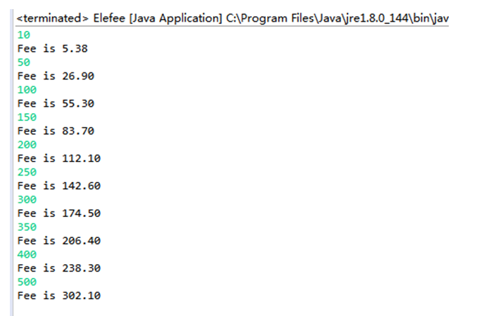 编写程序,用户从键盘输入用电量(要求在不终止程序的情况下能循环10次从键盘读入),程序输出用户应缴纳的电费。在报告中附上程序截图、运行结果截图和详细的文字说明。(20分)