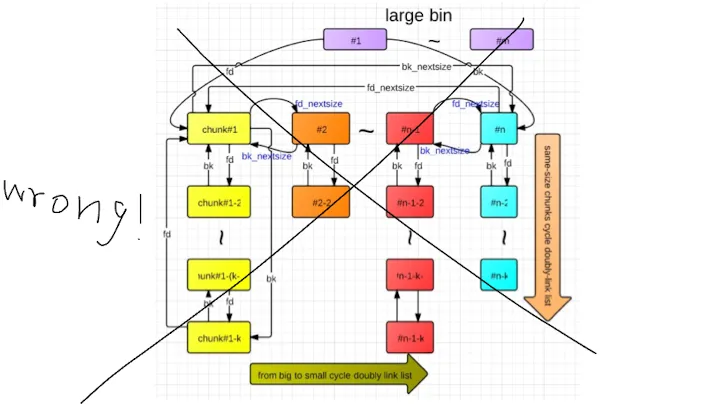 经过证实,上面的图片未能正确描述了largebin的结构!!!