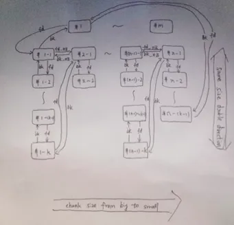 从上面可以看到,对于一个largebin里面的chunks来说,相同的chunk中之后第一个chunk的fd_nextsize和bk_nextsize被使用。并且,当存在相同大小的chunk时,插入的chunk总是位于相同的chunk中的第2个。