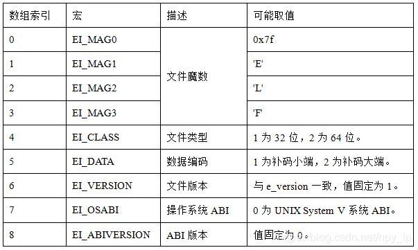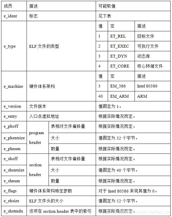ELF文件头的说明如下表所示: