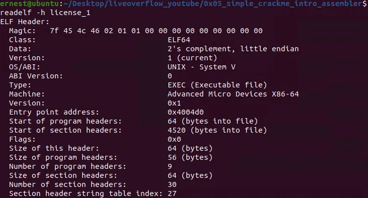 通过执行readelf命令可获得ELF可执行文件的文件头: