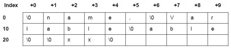 SHT_STRTAB类型的section用于保存字符串,它的格式如下例所示: