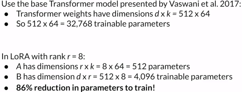 - 这些较小的矩阵的维度设置为使它们的乘积与被修改权重的维度相同。