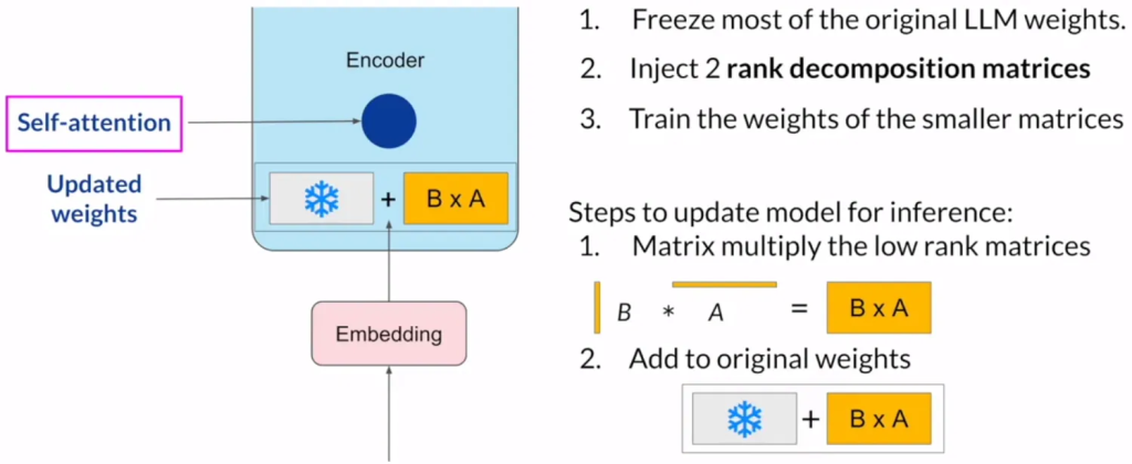 - 将此矩阵加到原始权重上,并在模型中用这些更新后的值替换原始权重。