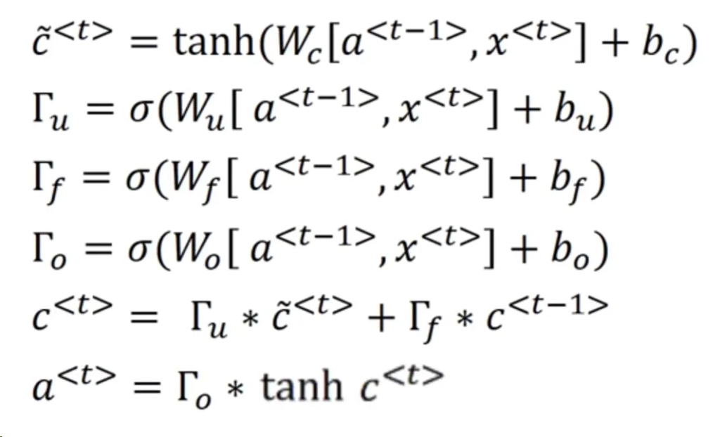 $$ \begin{equation}\tilde{c}^t = \tanh(W_c[a^{t-1}, x^t] + b)\end{equation} $$