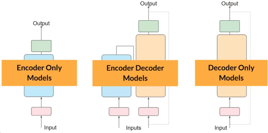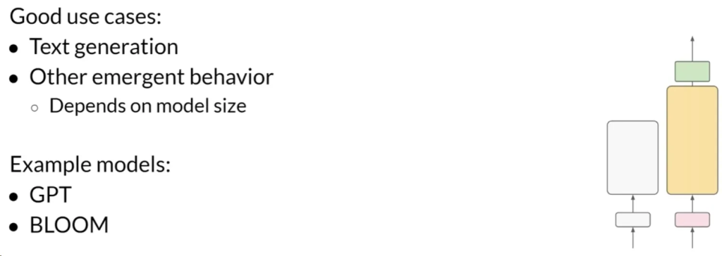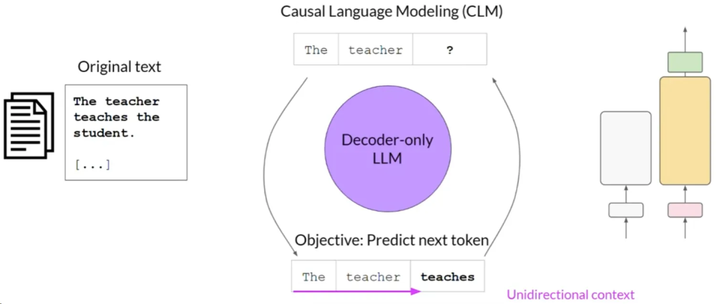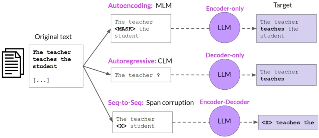 - 仅解码器模型(Autoregressive):使用CLM进行预训练,通常用于文本生成(例如GPT和BLOOM)。