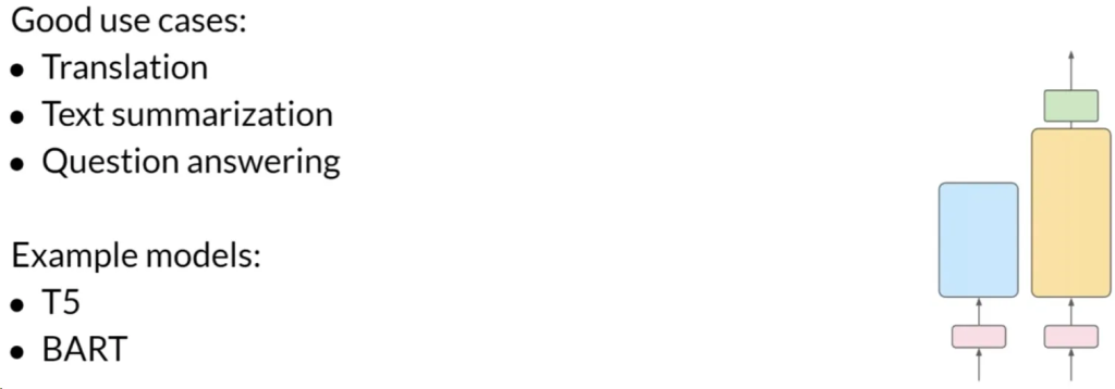 - 序列到序列模型(Sequence-to-Sequence):用编码器和解码器部分,预训练目标各异,适用于翻译、摘要和问答(例如T5和BART)。