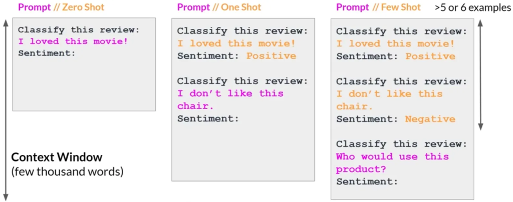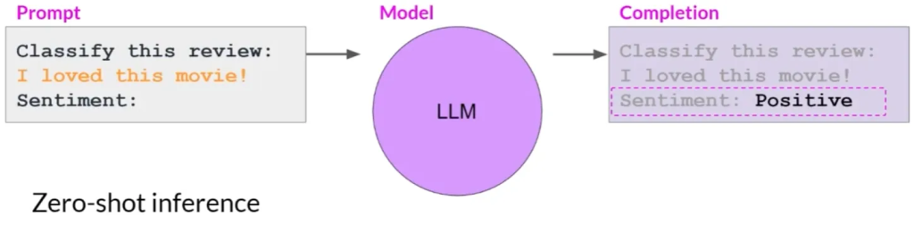 Zero-Shot Inference:不包含示例,直接让模型根据输入的指令和上下文执行任务。