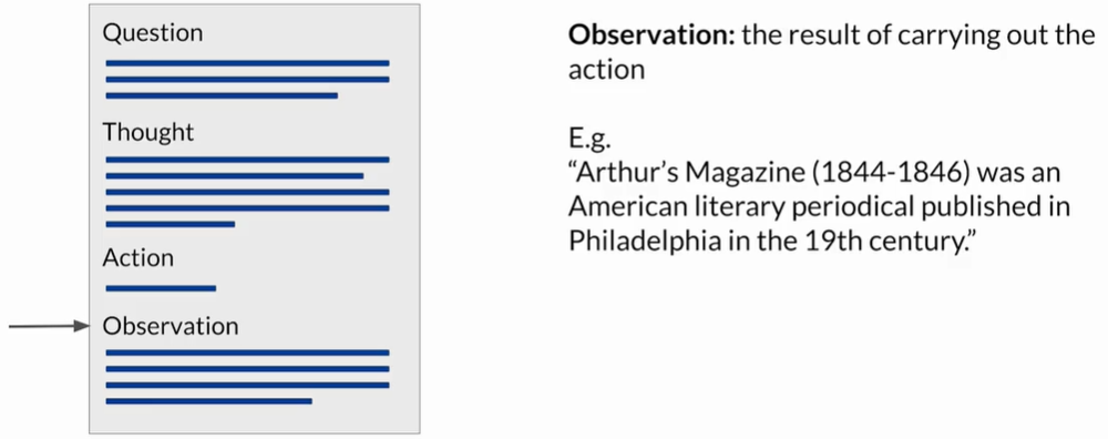 | Observation(观察) | 执行 Action 后得到的新信息,反馈给模型继续推理 |