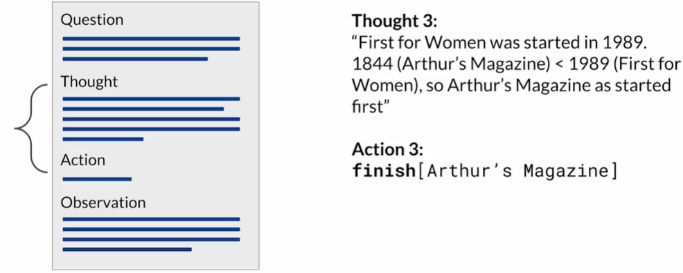 - 循环:Thought → Action → Observation,直到模型认为得到最终答案并执行 finish 动作。