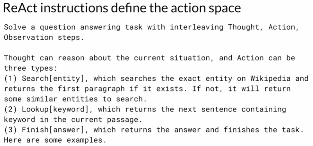 - 明确列出可用动作(search、lookup、finish)。