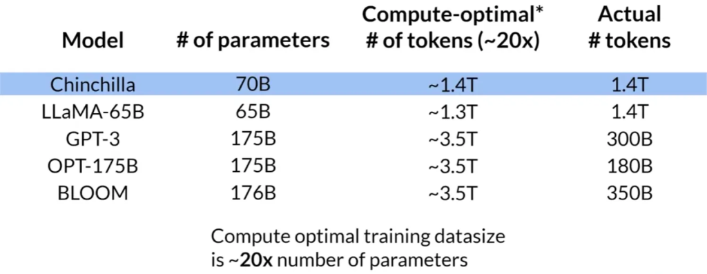 - Chinchilla研究指出许多大型模型(如GPT-3)可能过度参数过多而训练不足。