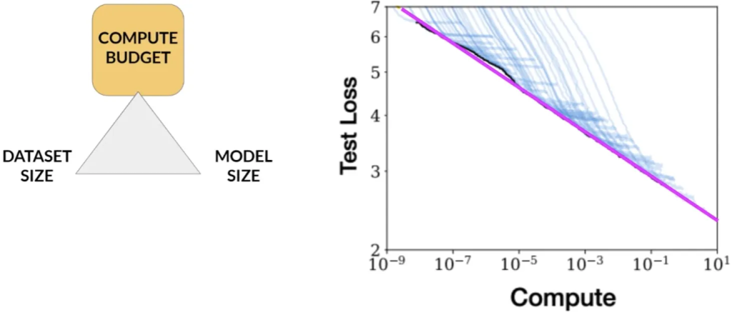 研究显示,模型性能与计算预算之间存在明确的关系,可以通过幂律关系来近似。