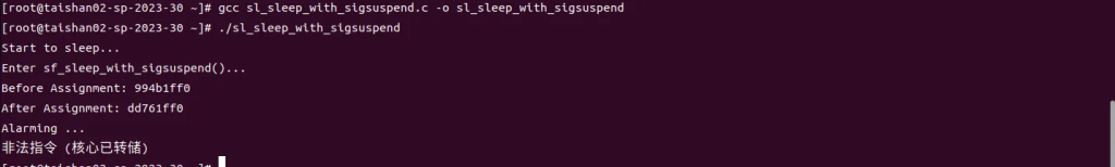 手动赋值newact.sa_flags = 0xdd761ff0;并执行程序: