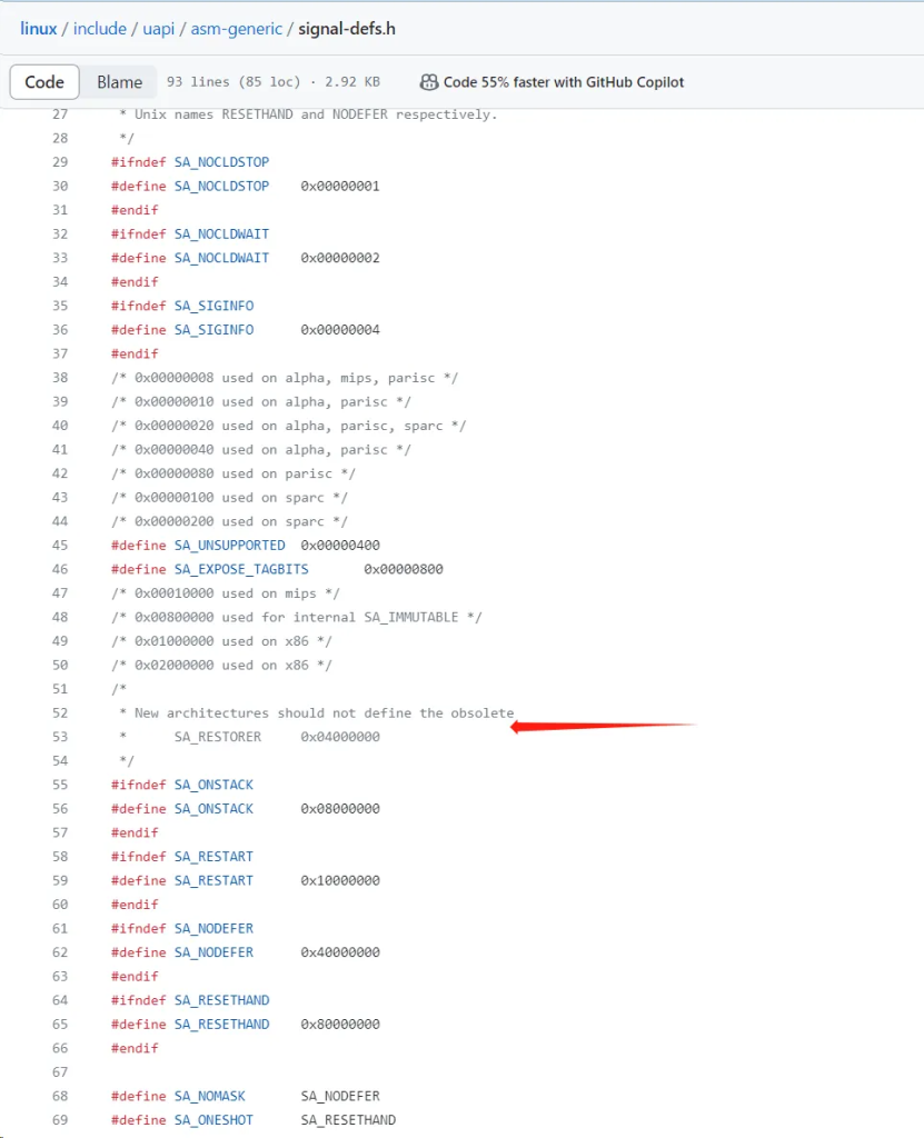 查看更新版本的Linux对sa_flags的定义(Commits on Nov 4, 2021):