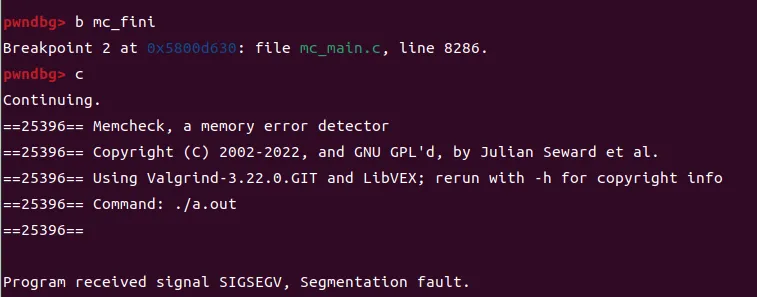 Breakpoint 2, mc_fini (exitcode=0) at mc_main.c:8286